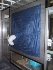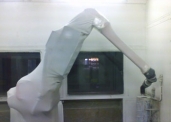 - The knit tubing has been espacially developed to provide the stretch and slip necessary for the robot to move within the tube without becoming tangled. The oversprayed paint is kept off the robot.